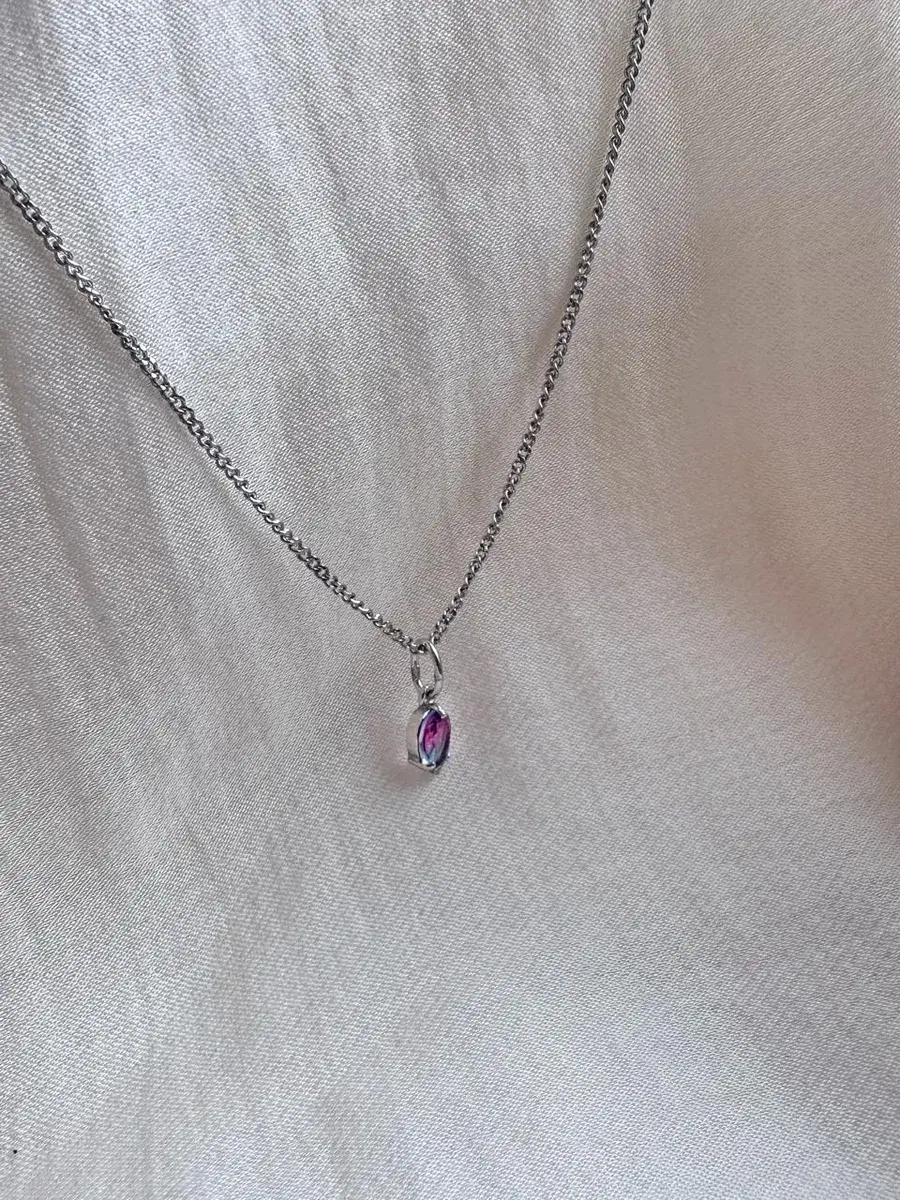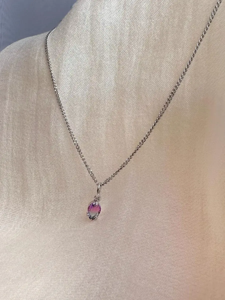 Особенностью данной подвески на шею является вставка из розового Турмалина им. Груша размером 7.00*5.00 мм, весом 0.110 карата. Розовый Турмалин известен своими целебными свойствами и способностью улучшать энергетическое состояние человека, делая его особенно ценным камнем для украшений. Огранка камня в форме груши добавляет изделию элегантности и изящества.